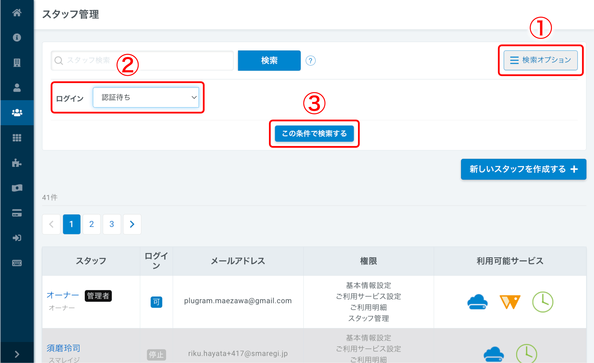 認証できていないスタッフがいる場合はこちらの操作をお試しください。