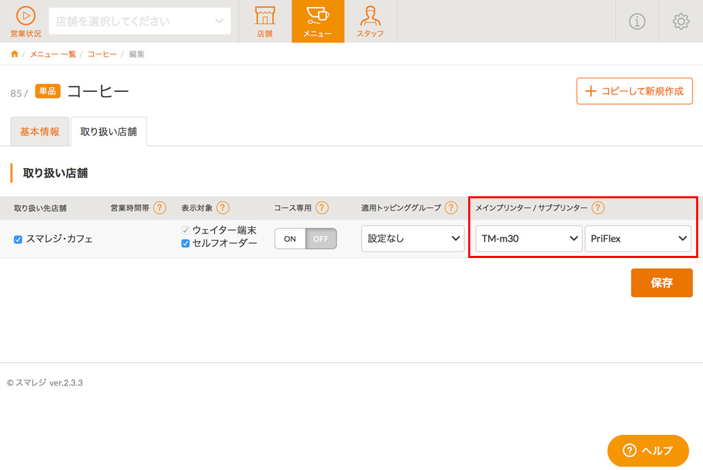 特定のメニューのみ、別のプリンターから印刷する場合に活用します。