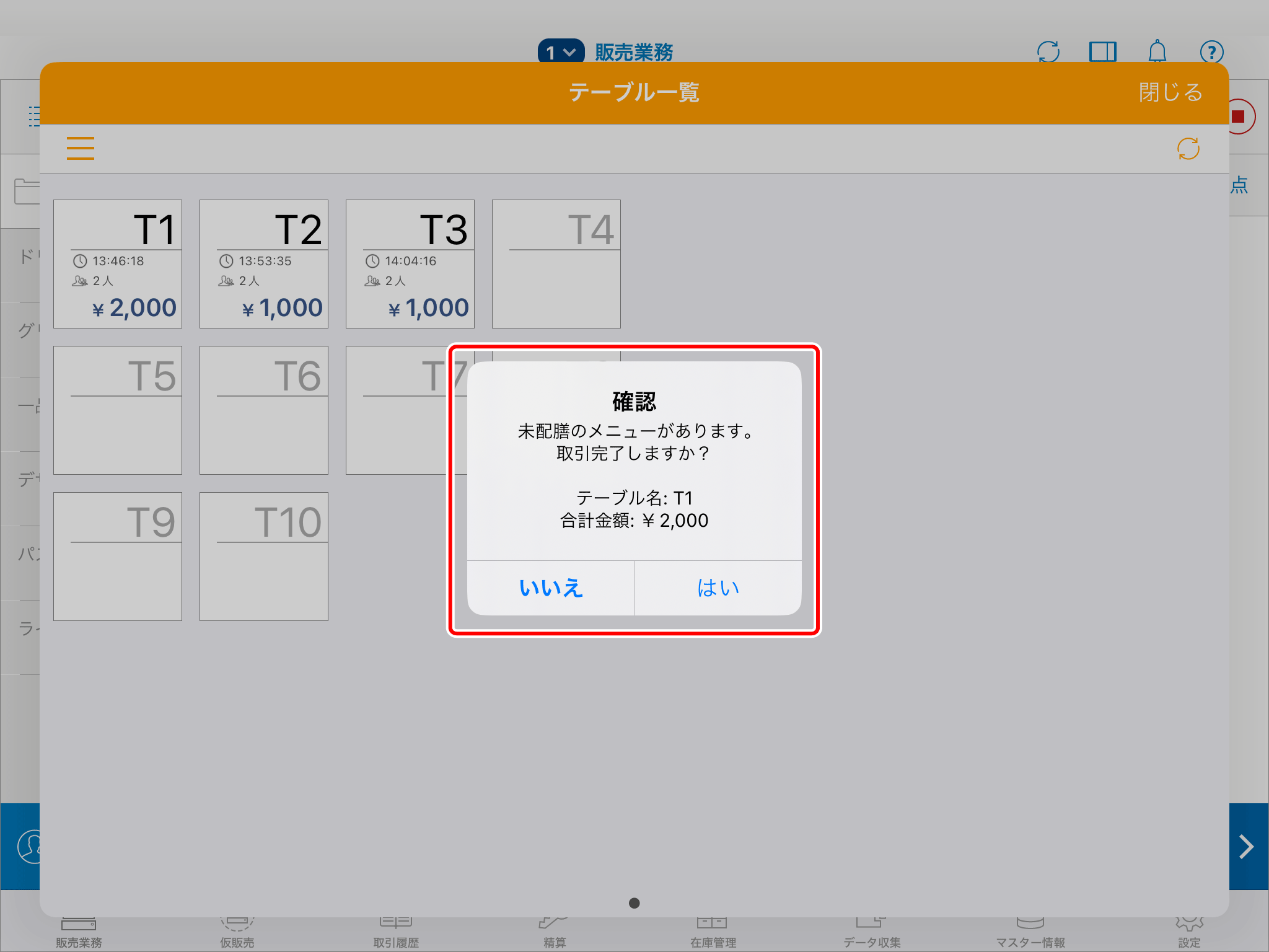 スマレジでお会計の際に未配膳のメッセージが表示される場合